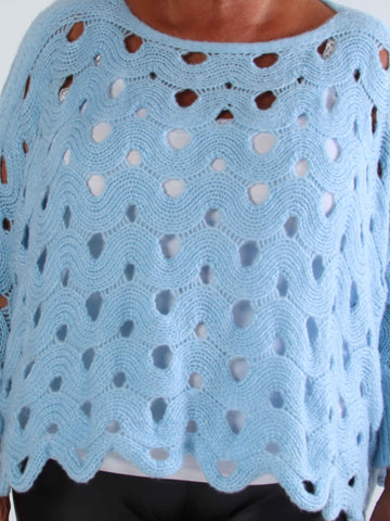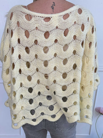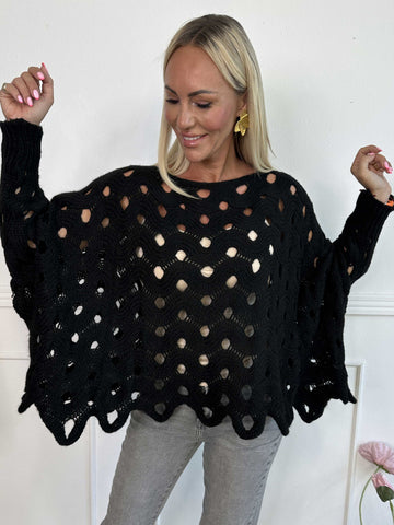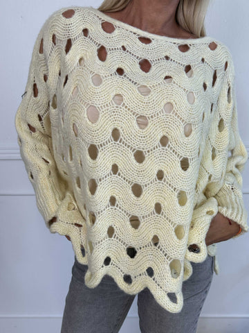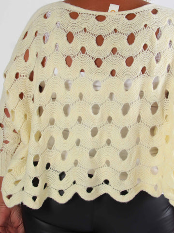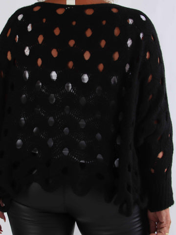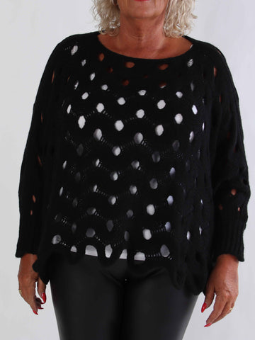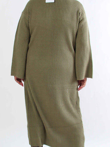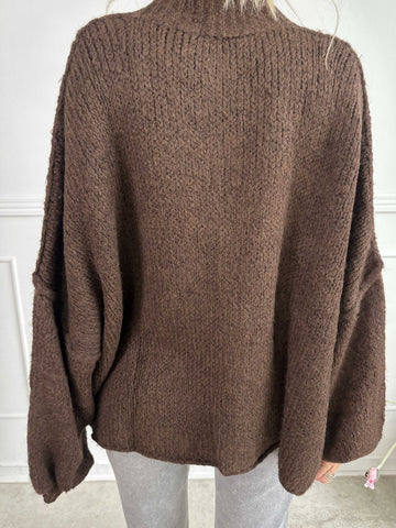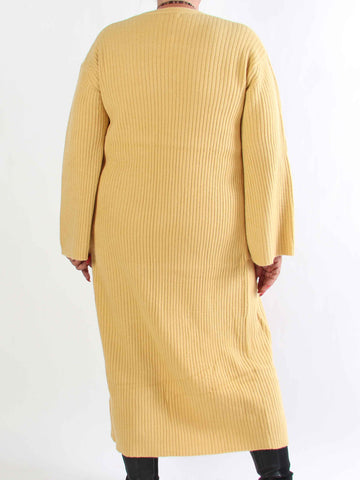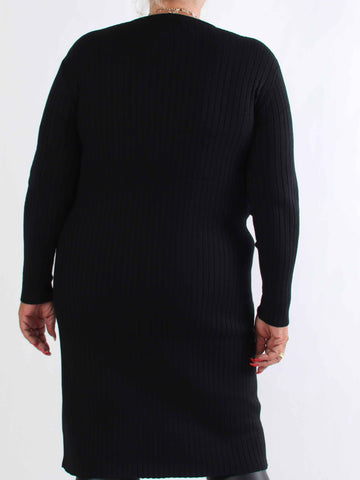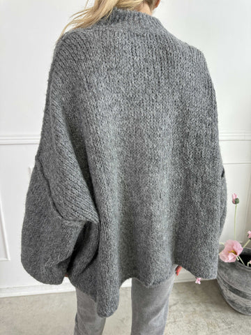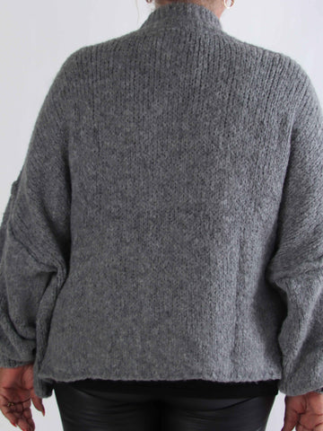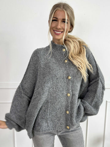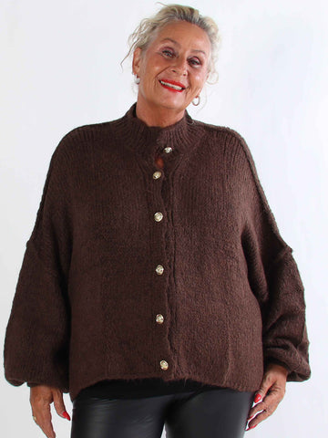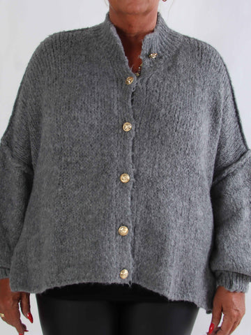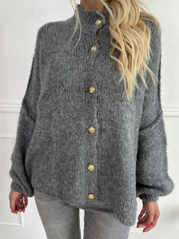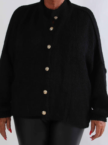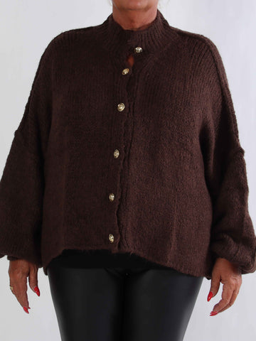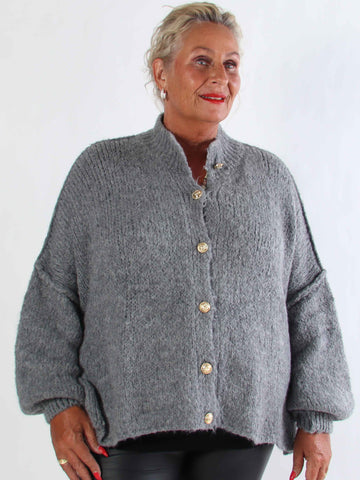 Olrun - Plus size strikcardigan med ballonærmer og guld knapper