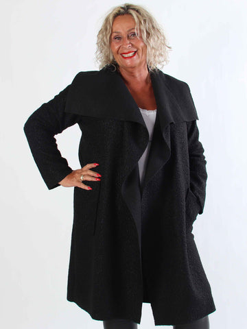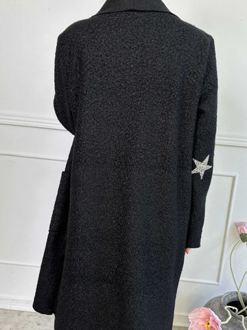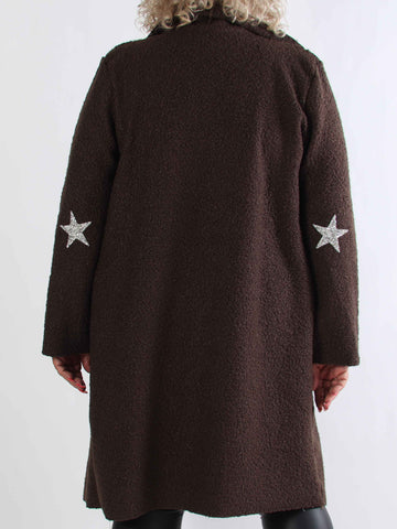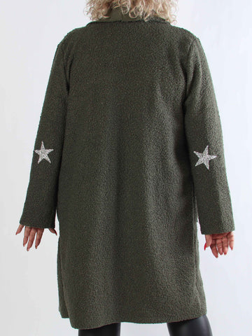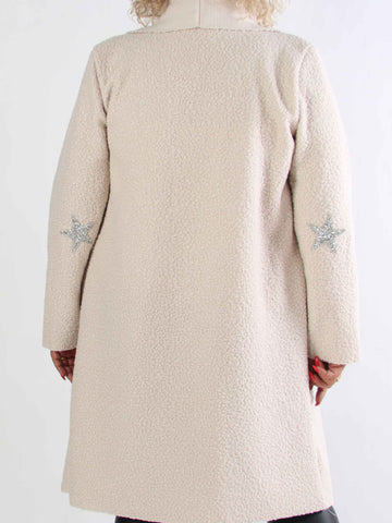 Malfrid - Plus size frakke i blød teddy med shiny stjerner