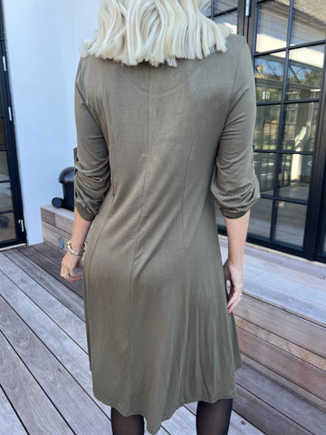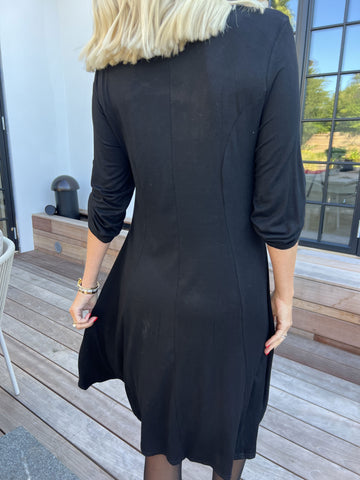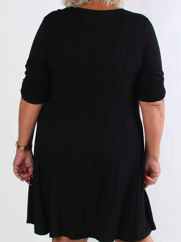 Marlene Gold - Ensfarvet elastisk kjole med a-facon med guld dutter