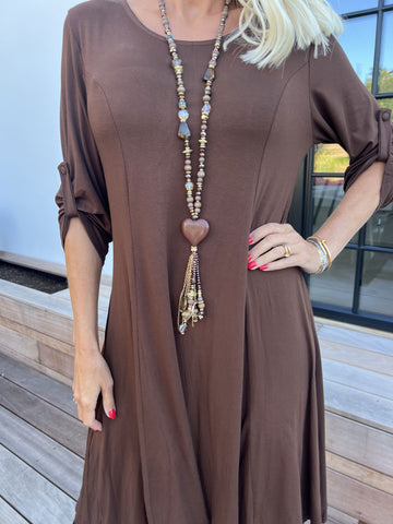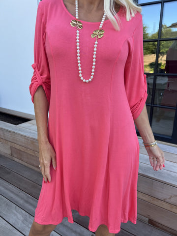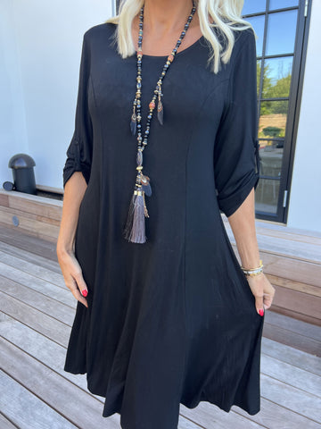 Marlene Plain - Ensfarvet kjole i viskose med a-facon