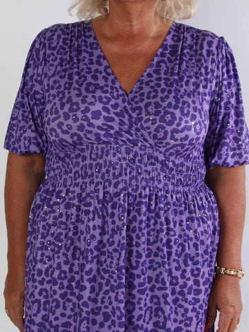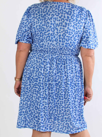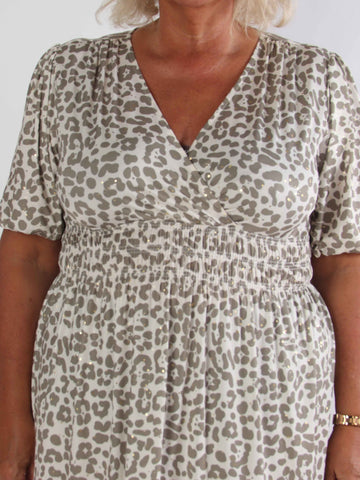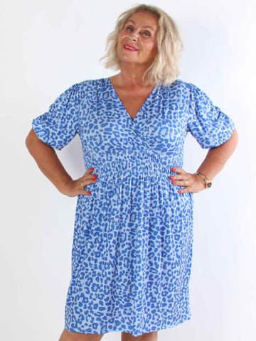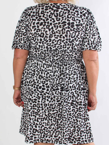 Pamina Leo Short - Kort elastisk plus size kjole i leopardprint