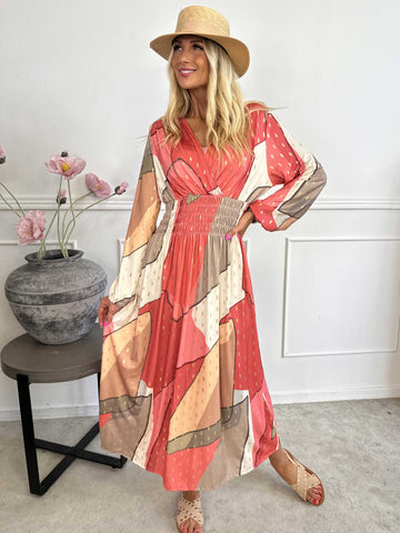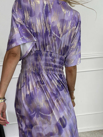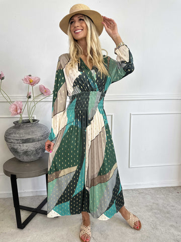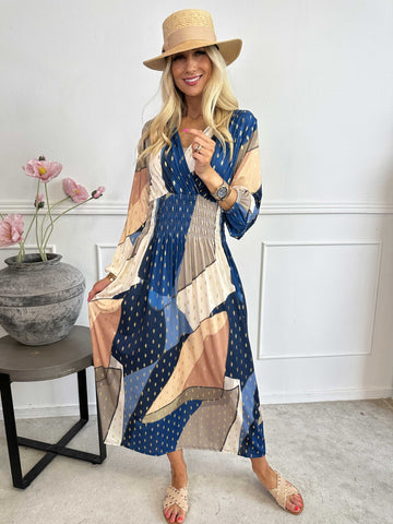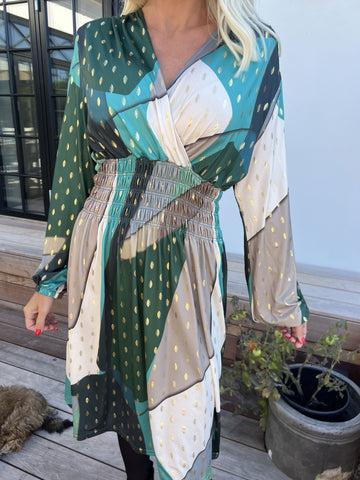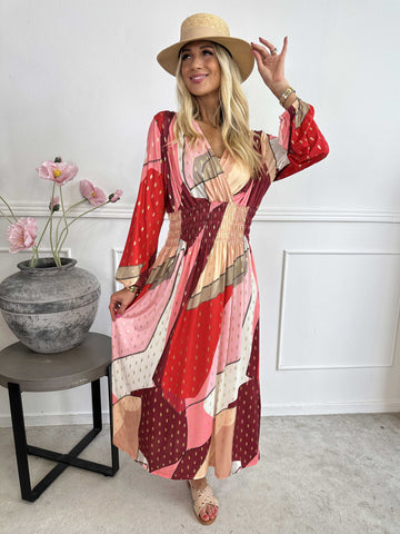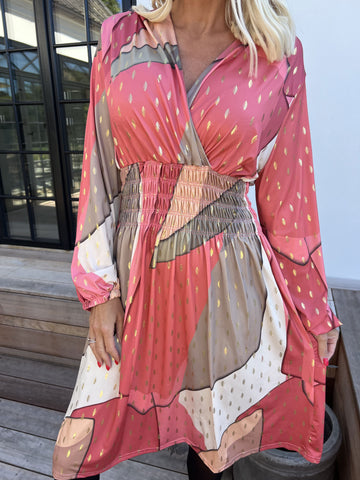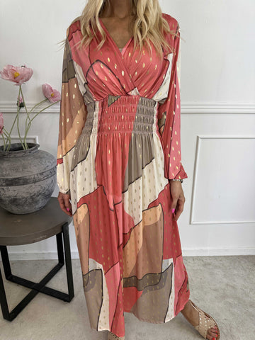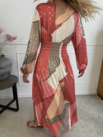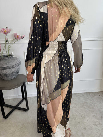 Ebba Paint Long - Elastisk flerfarvet kjole med guld dutter
