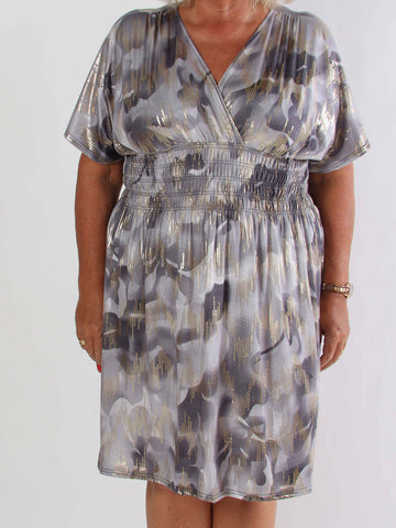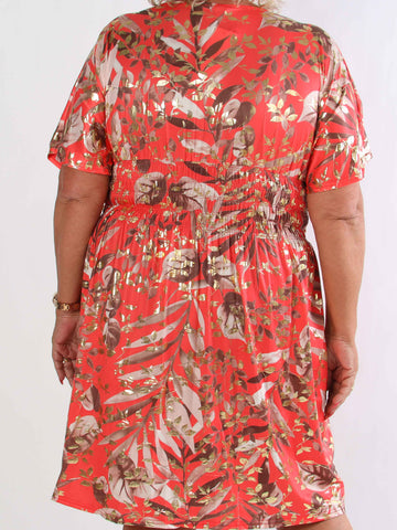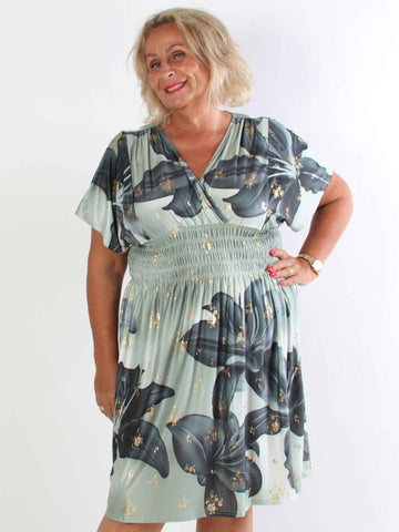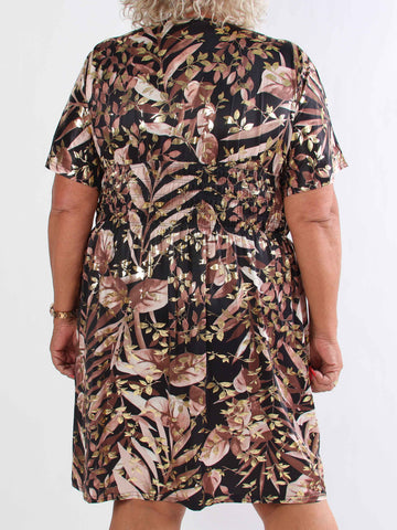 Pams Gold Leaf Short - Plus size kjole med blomsterprint og guld detaljer