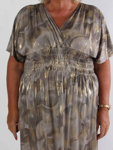 Pams Glamorous - Plus size elastisk kjole med fine guld detaljer