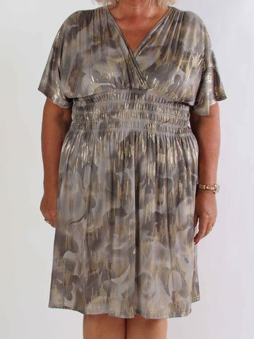 Pams Glamorous Short - Plus size elastisk kjole med fine guld detaljer