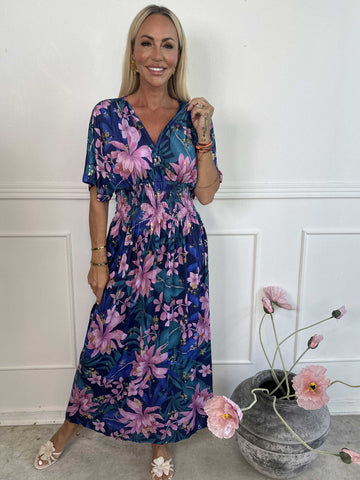 Pams Fiore - Lang elastisk kjole i blomsterprint