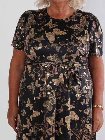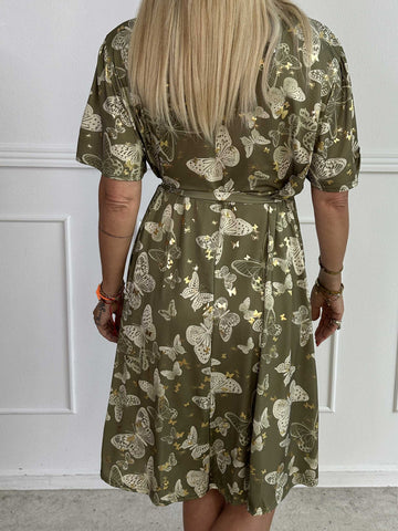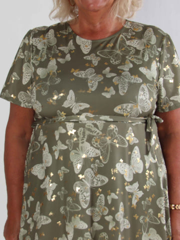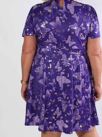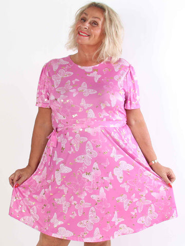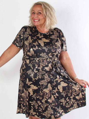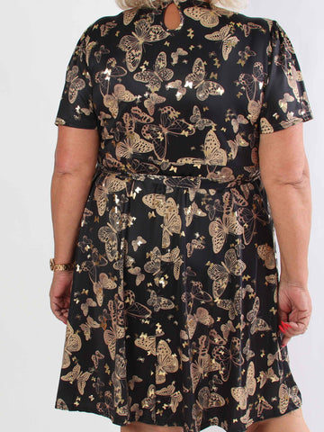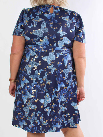 Sansa Butterfly Short - Elastisk plus size kjole med sommerfugleprint