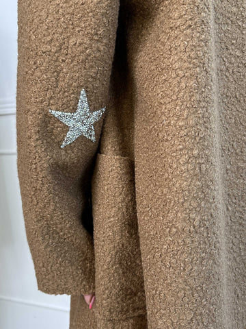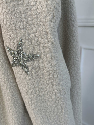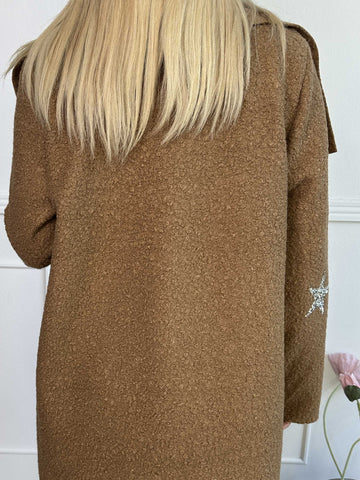 Malfrid - Frakke i blød teddy med shiny stjerner