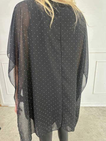 Alpha - Sød plus size tunikakjole med et chiffonlag med skinnende sten