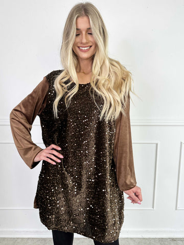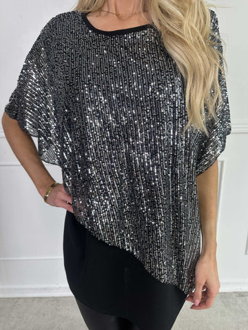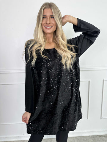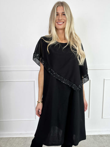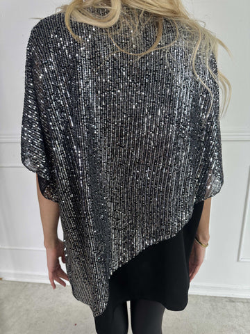 Aude - Oversized tunika med asymmetrisk pailletlag