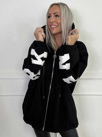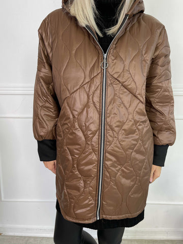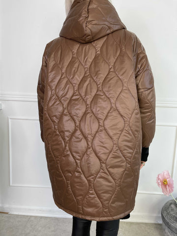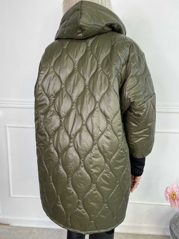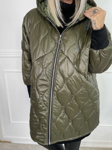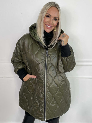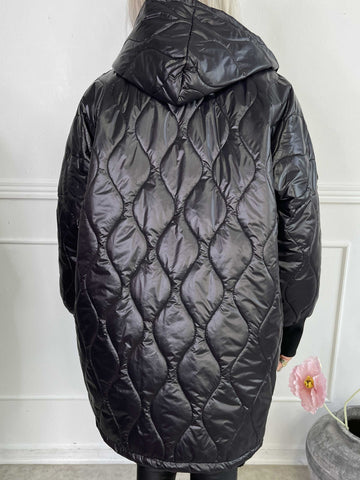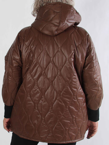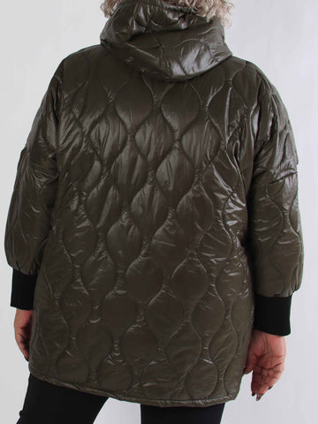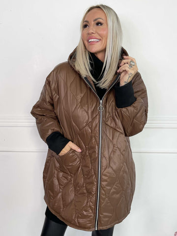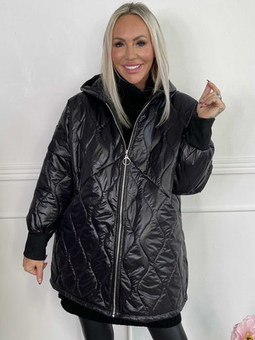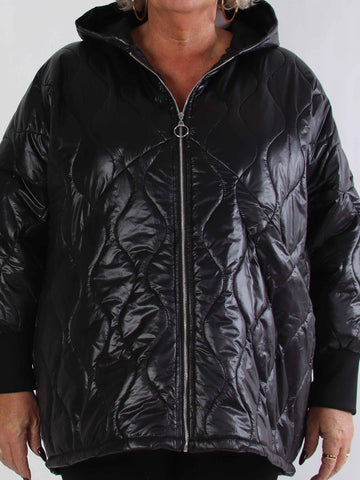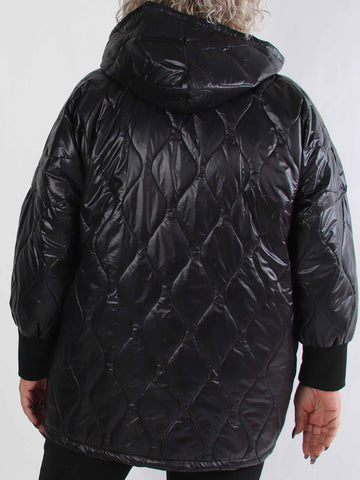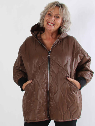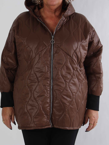 Augusta - Quiltet plus size jakke med hætte og lynlås