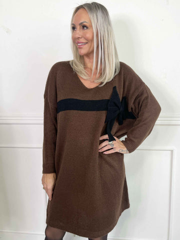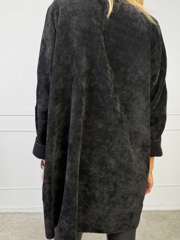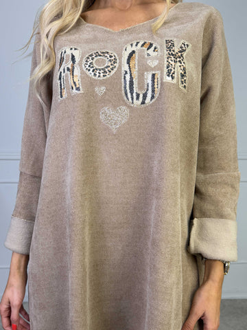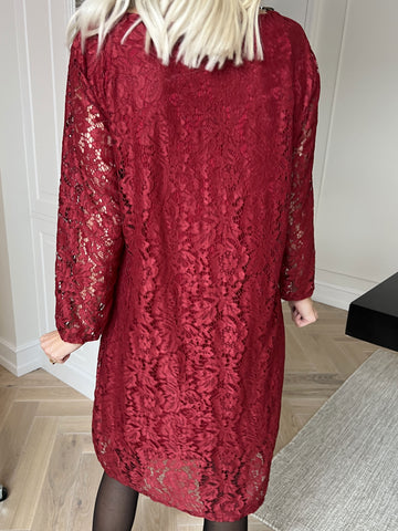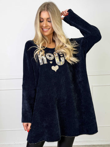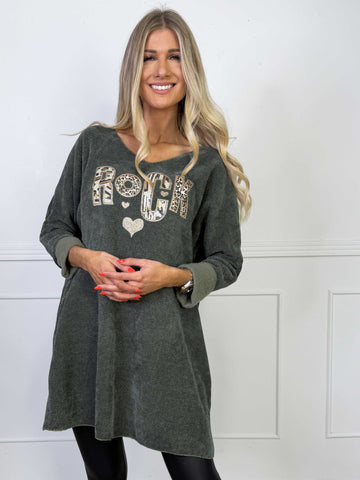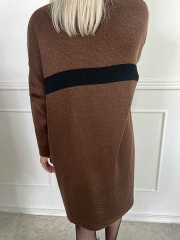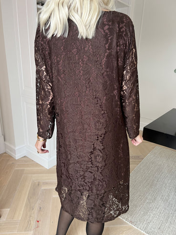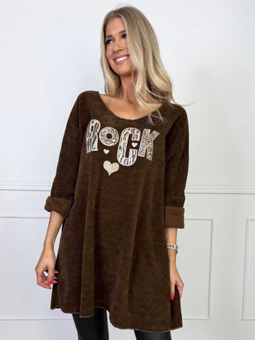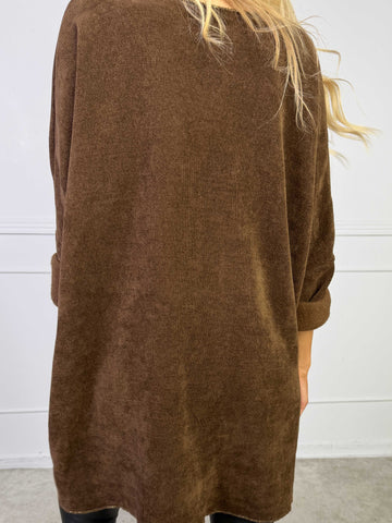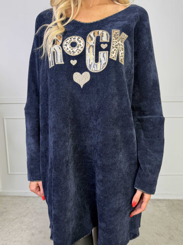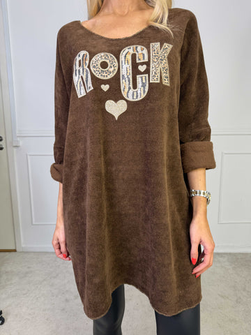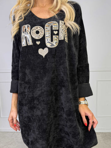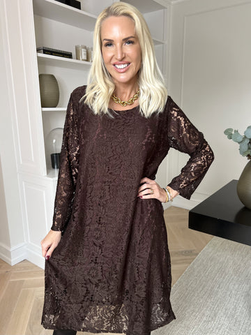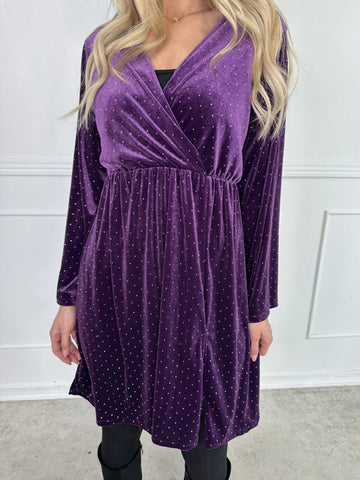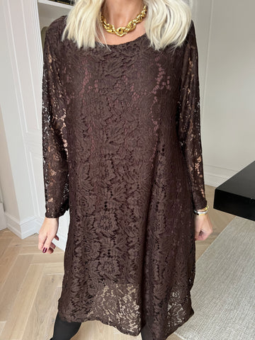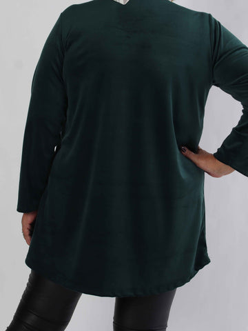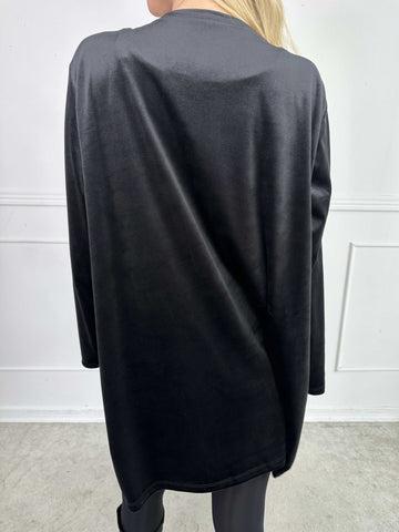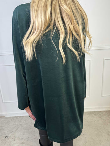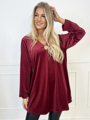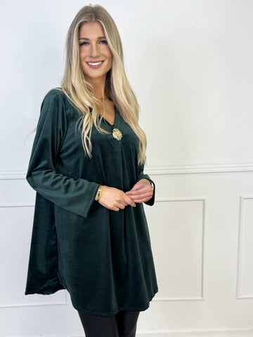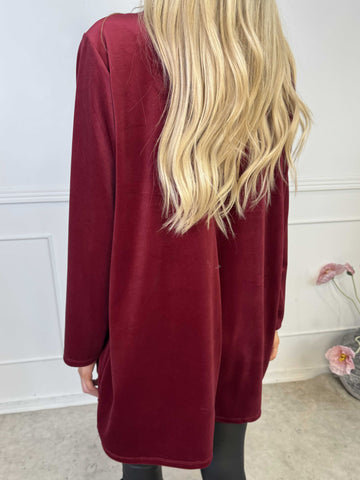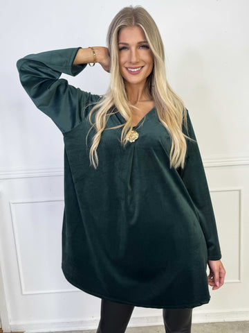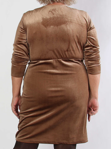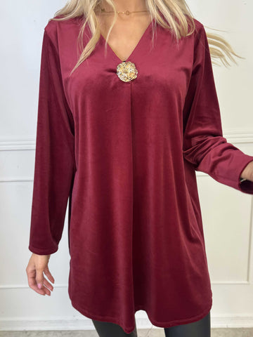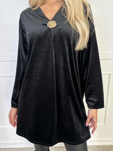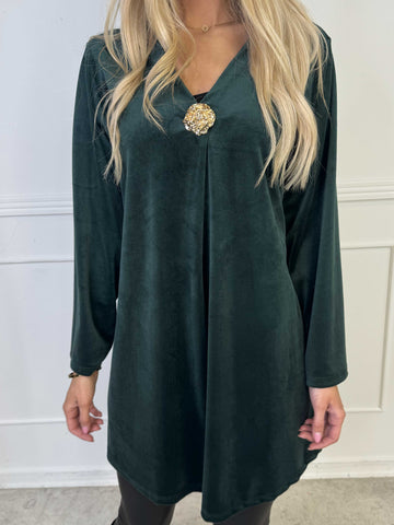 Ylva - Blød plus size tunikakjole i velour med guld broche
