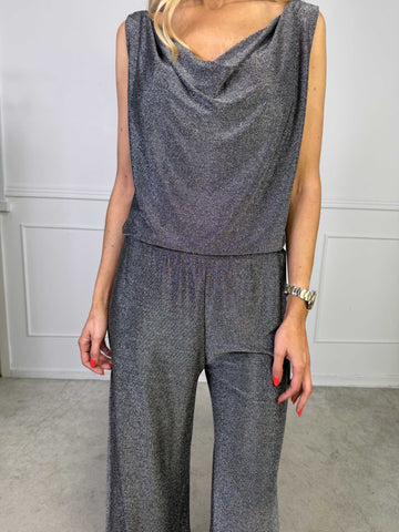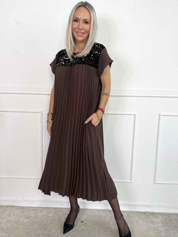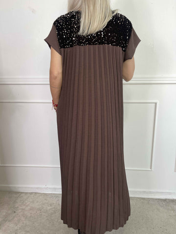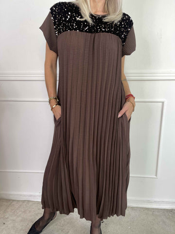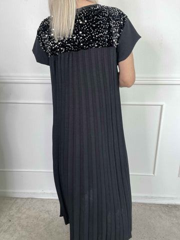 Nancy Party - Lang plisseret kjole med pailletter og velour