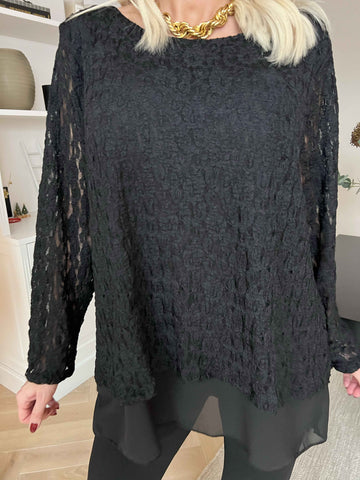 Norma - Plus size tunika i chiffon med detaljerede ærmer