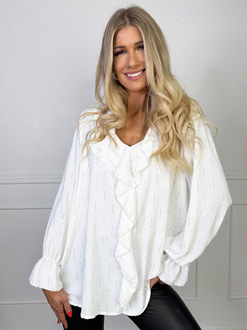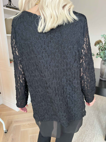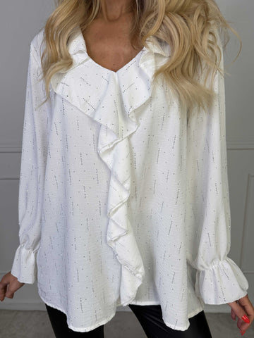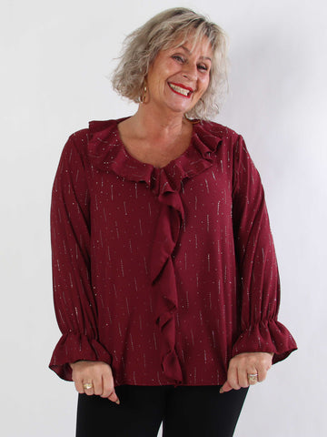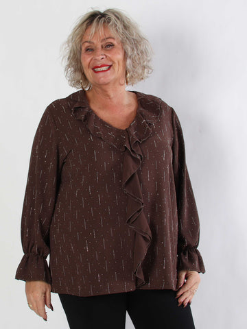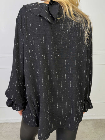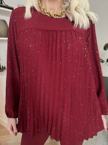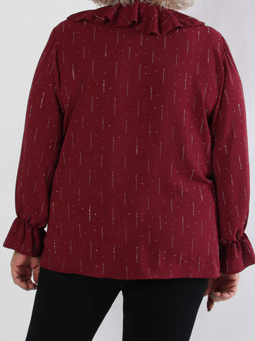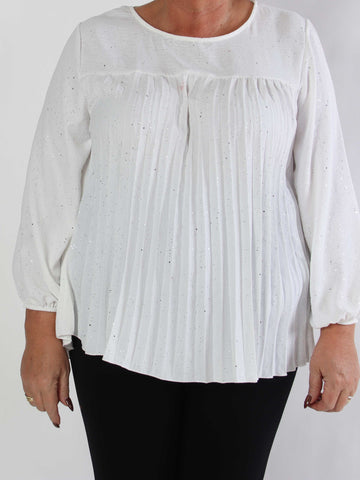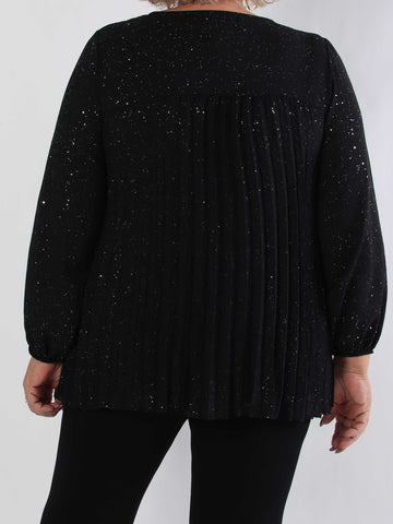 Nancy Glitter Shirt L/S - Plisseret plus size bluse med glitter