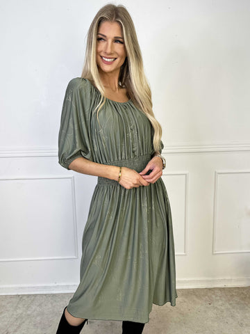 Cora Royal Gold Midi - Elastisk kjole med guld print