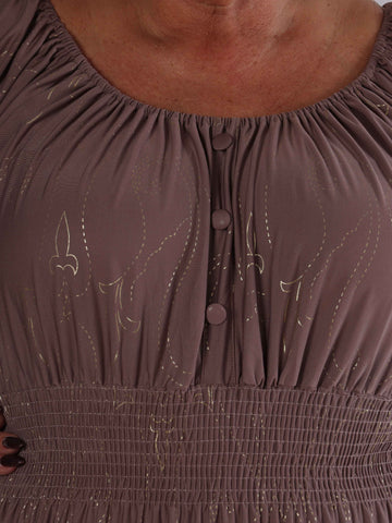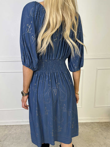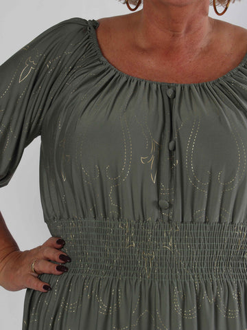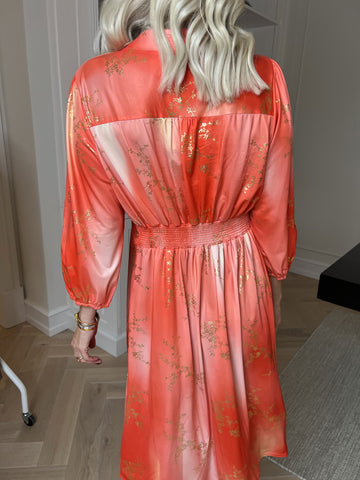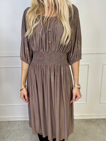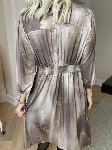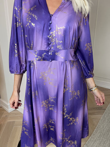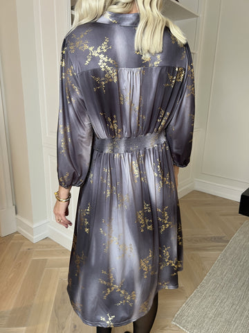 Vivien Gold - 3/4 ærmet kjole med guldprint og slåede knapper