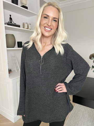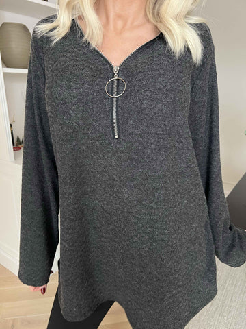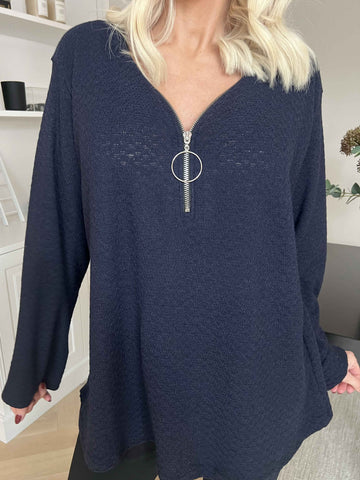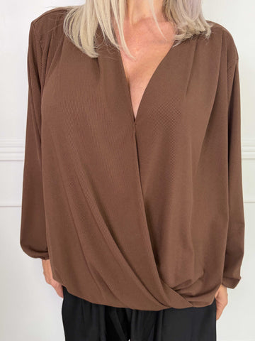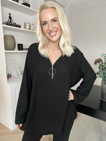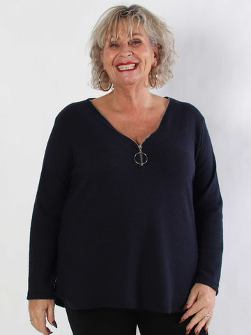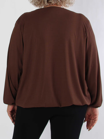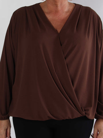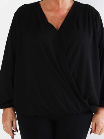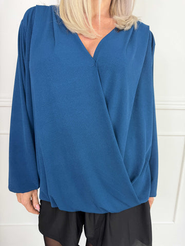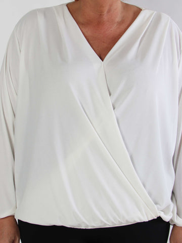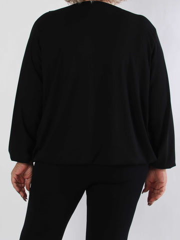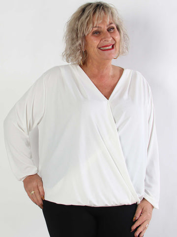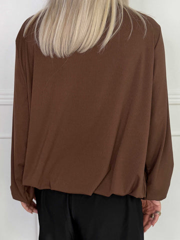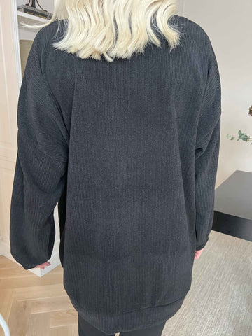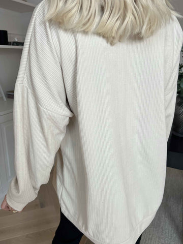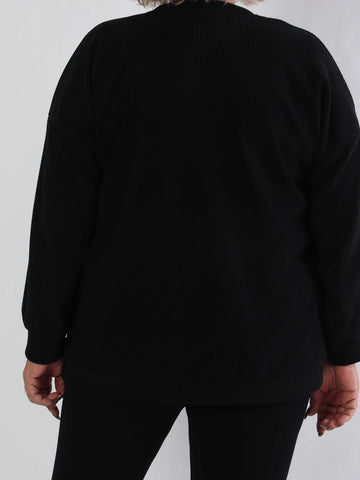 Rakel Plain - Langærmet plus size bluse i ribbet stof