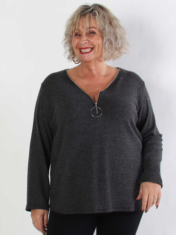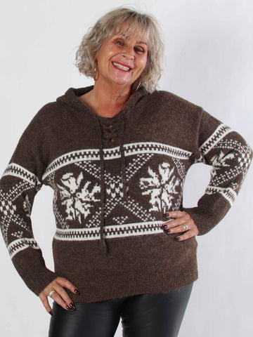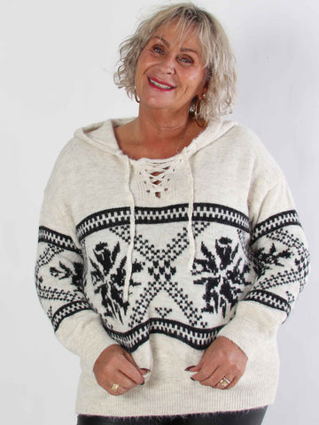 Veni - Hyggelig plus size uldstrik med snøre i udskæringen