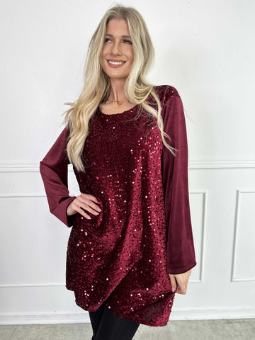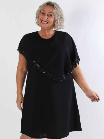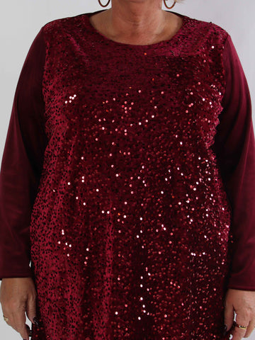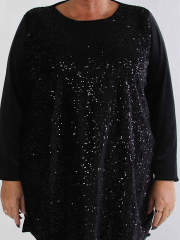 Aude - Plus size tunika med asymmetrisk pailletlag