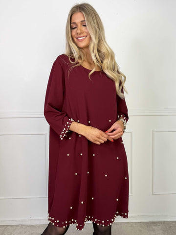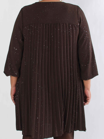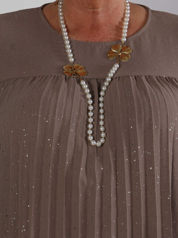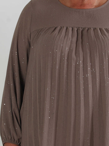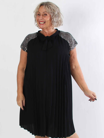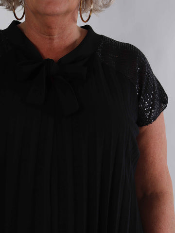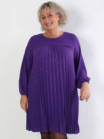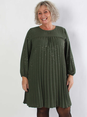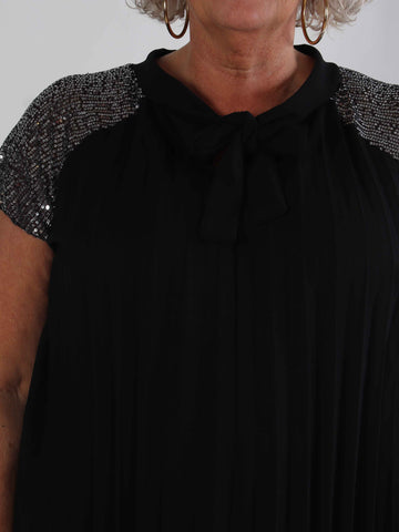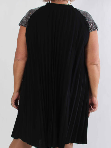 Electra - Plisseret plus size kjole med A-facon og pailletærmer