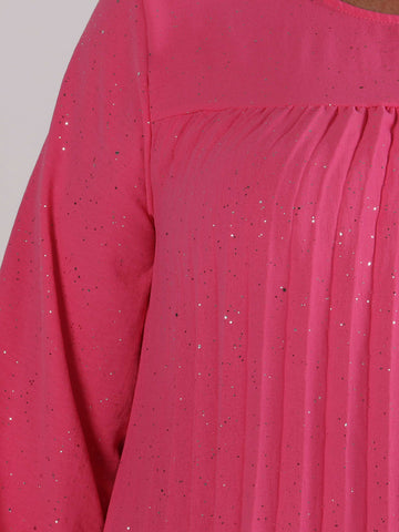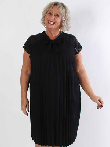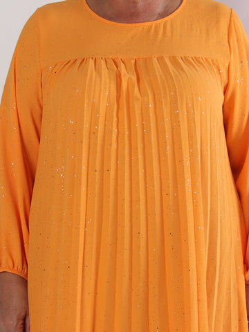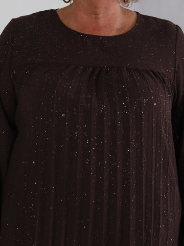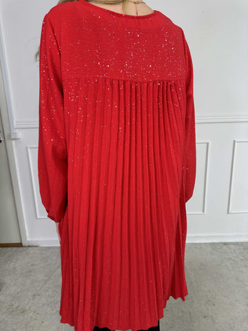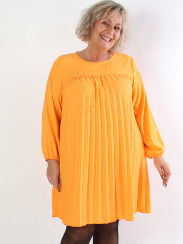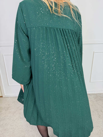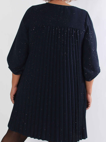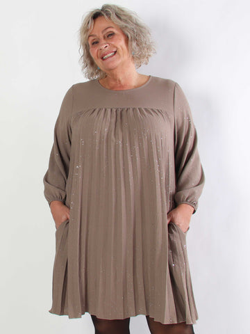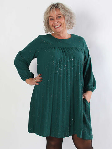 Nancy Glitter Short L/S - Plisseret plus size kjole med lommer og glimmer