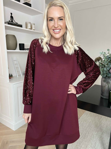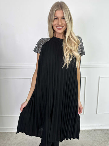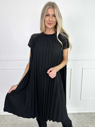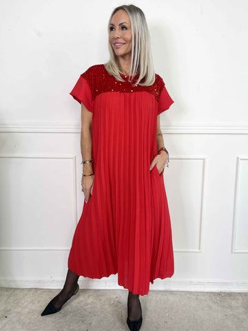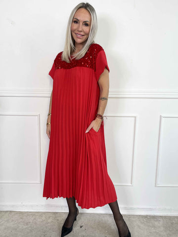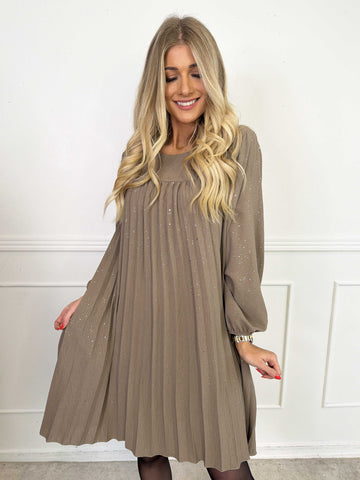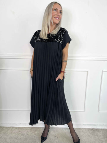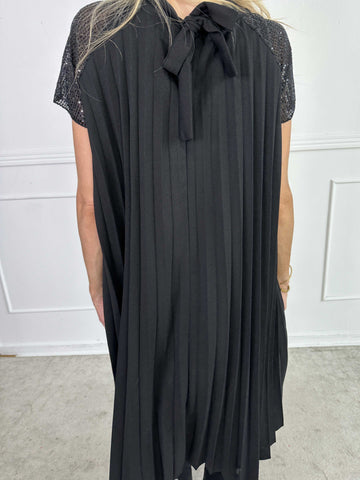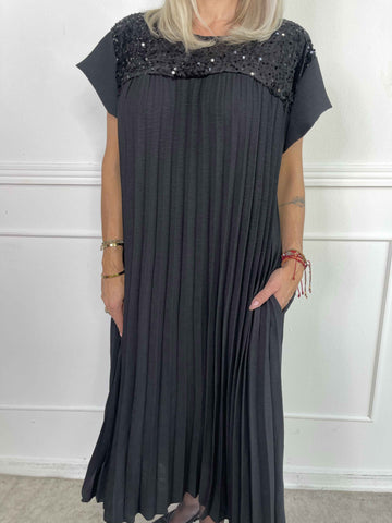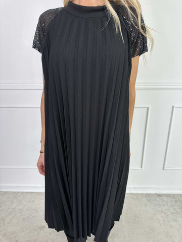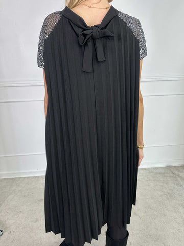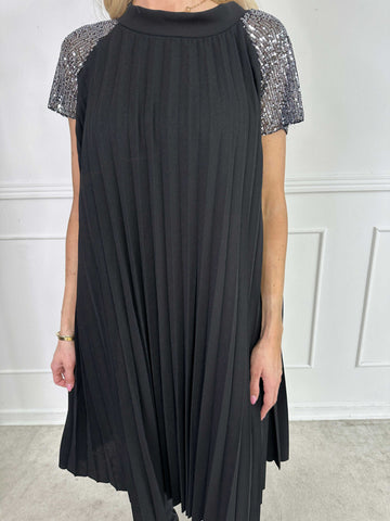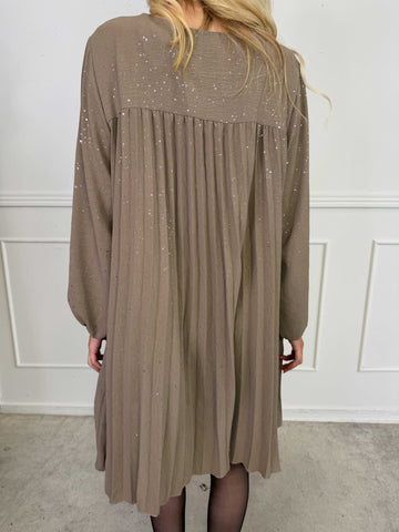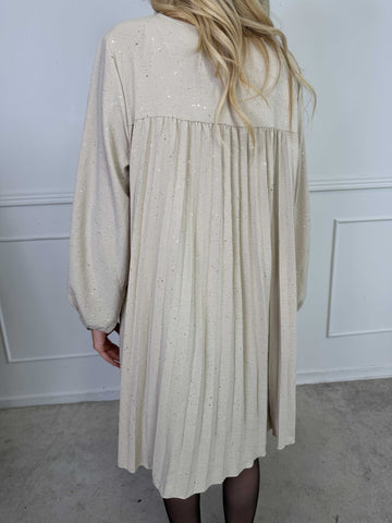 Electra - Plisseret kjole med A-facon og pailletærmer