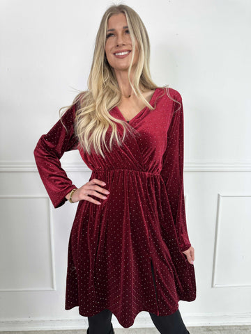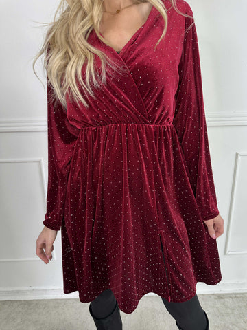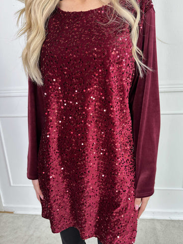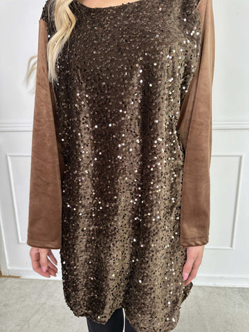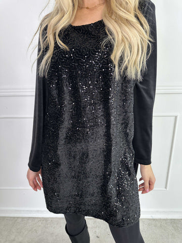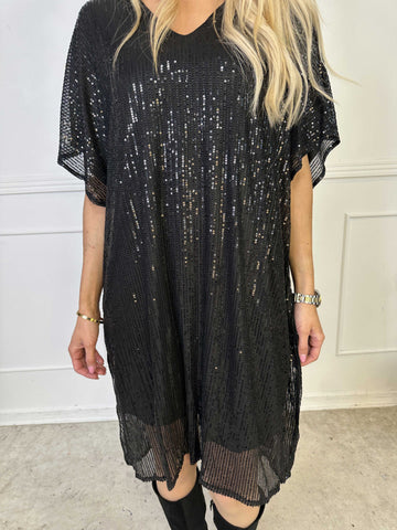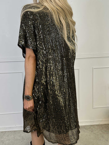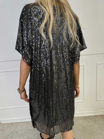 Norian - Festlig tunikakjole med pailletter og v-udskæring