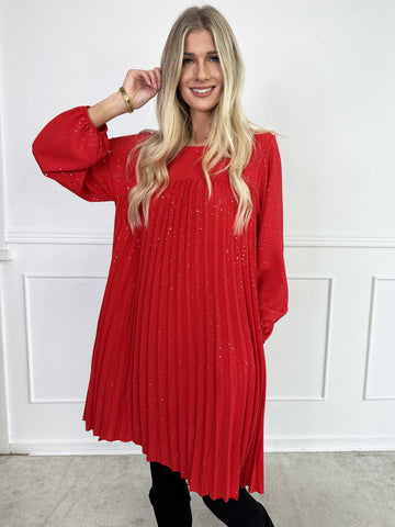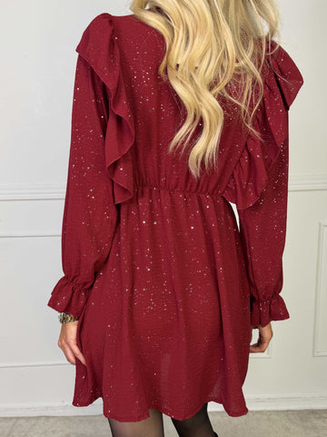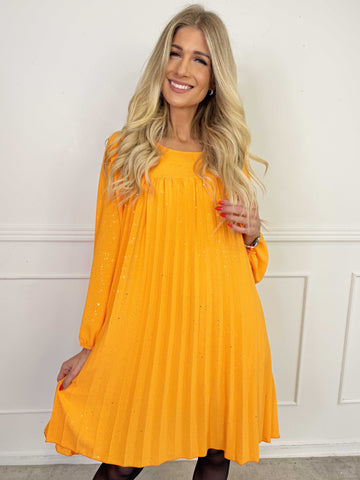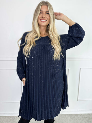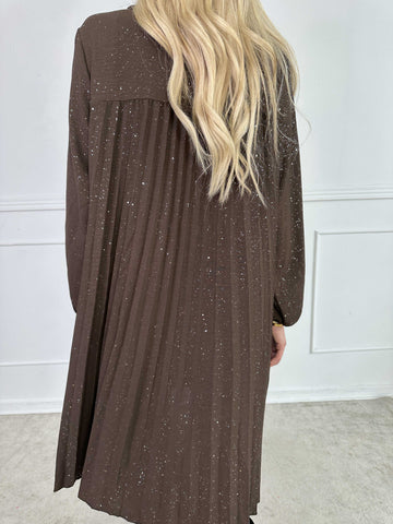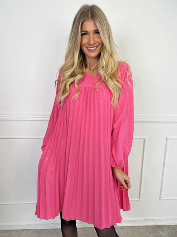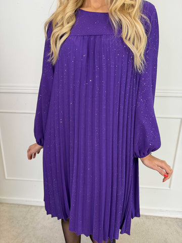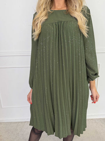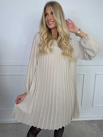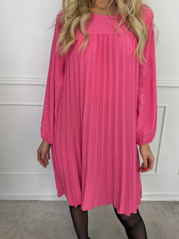 Nancy Glitter Short L/S - Plisseret kjole med lommer og glimmer