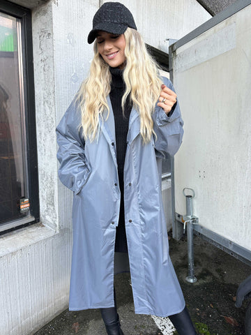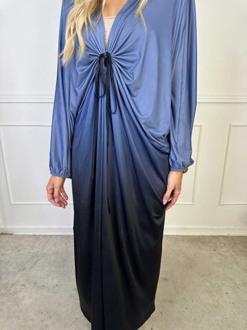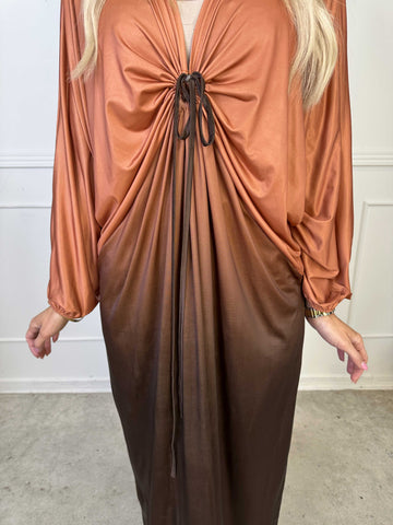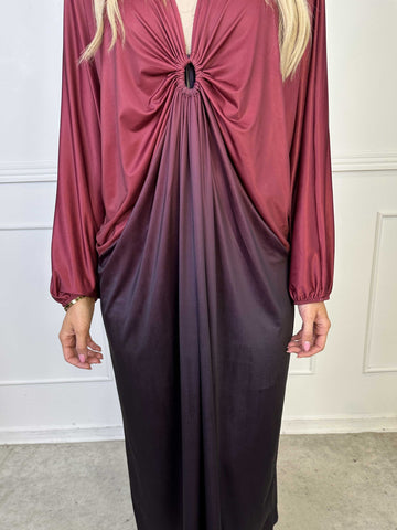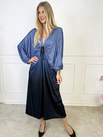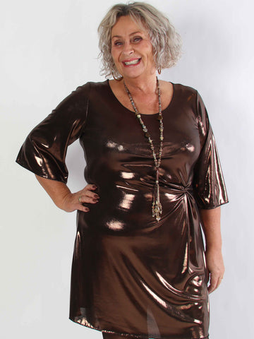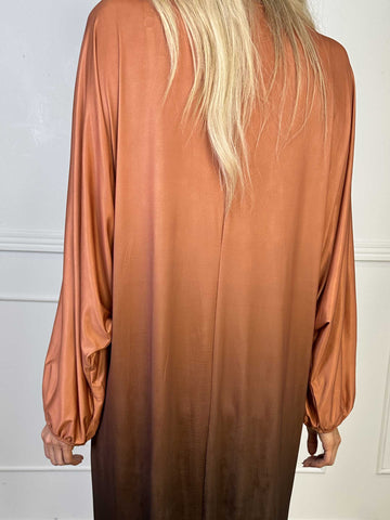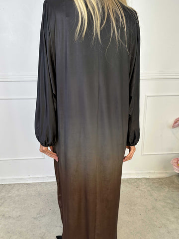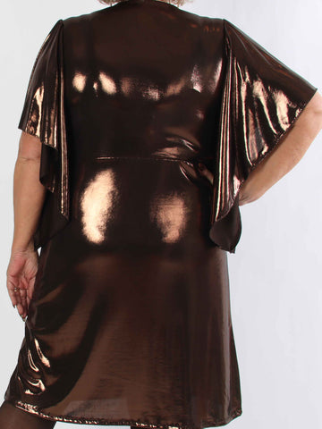 Feliciti long - Shiny plus size skjortekjole med flagermusærmer