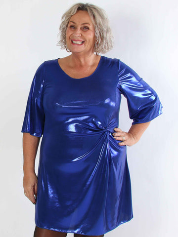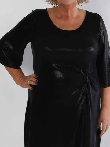 Roxy - Plus size kjole i shiny materiale med elegant knudedetalje