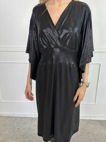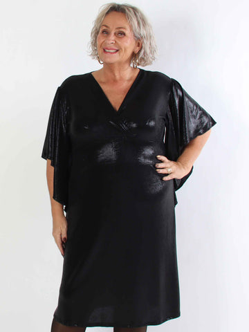 Safi - Elegant plus size kjole shiny materiale med søde ærmer