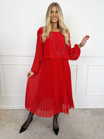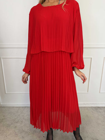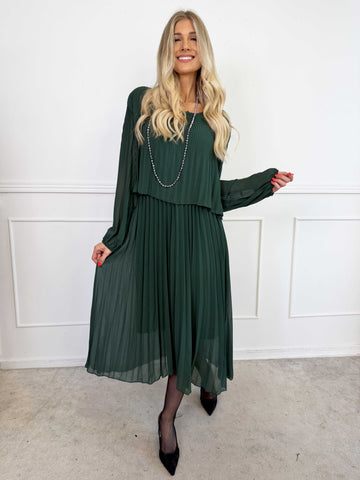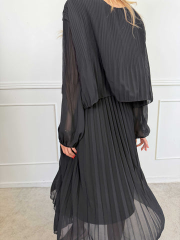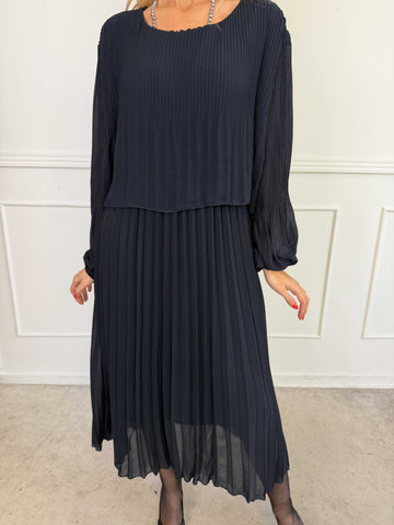 Kristina Long - Langærmet kjole med plisseringer i to lag