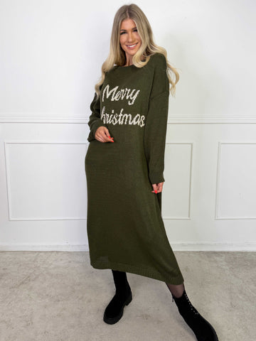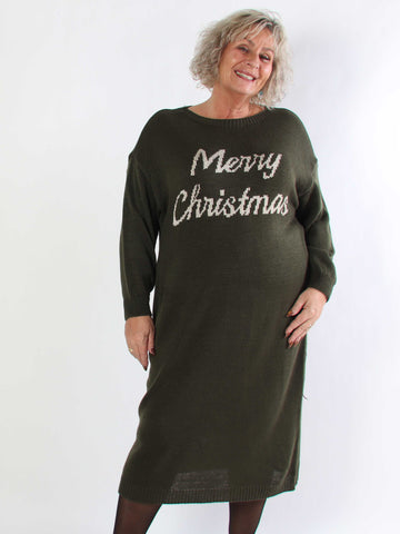 Kristina Long - Langærmet plus size kjole med plisseringer