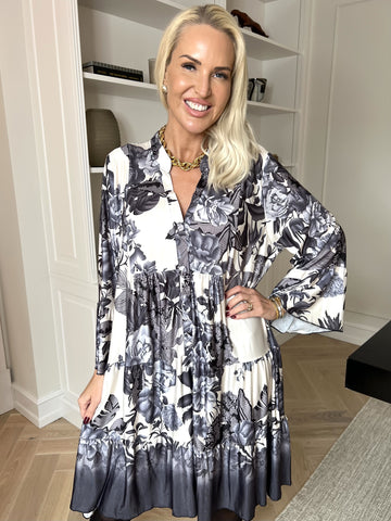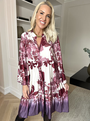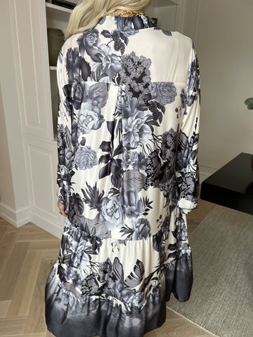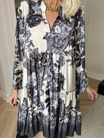Milania Flower - Elastisk blomstret kjole med flæselag