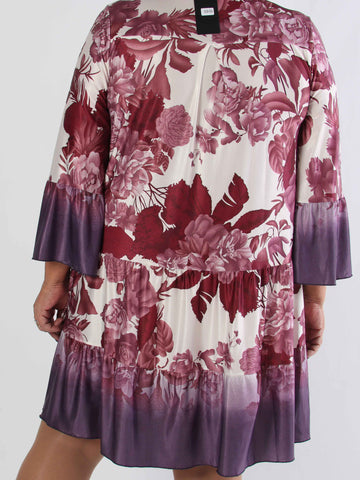 Milania Flower - Elastisk blomstret plus size kjole med flæselag