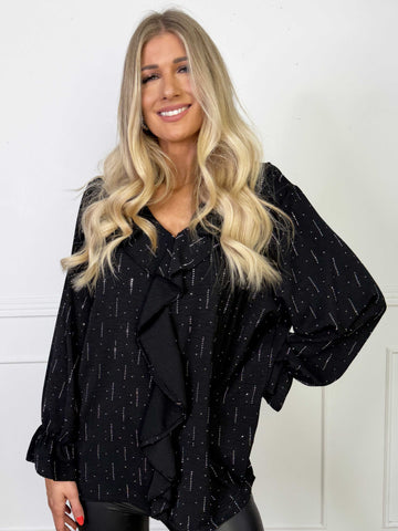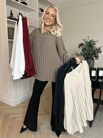 Nancy Glitter Shirt L/S - Plisseret bluse med glitter