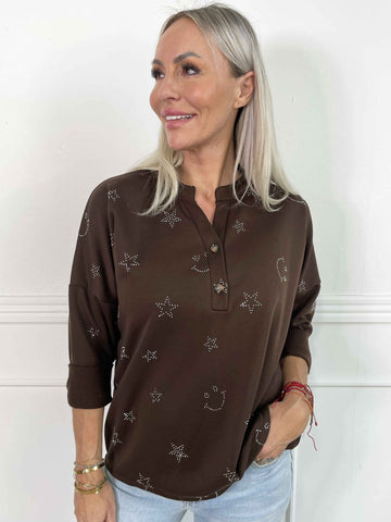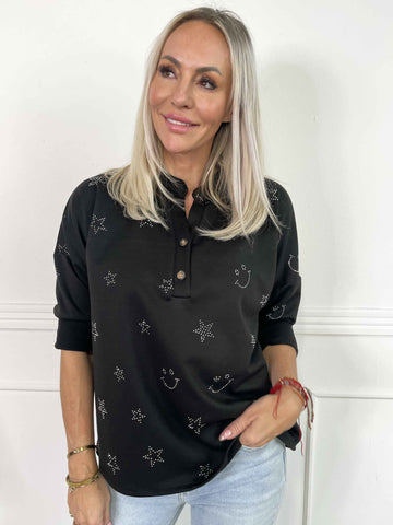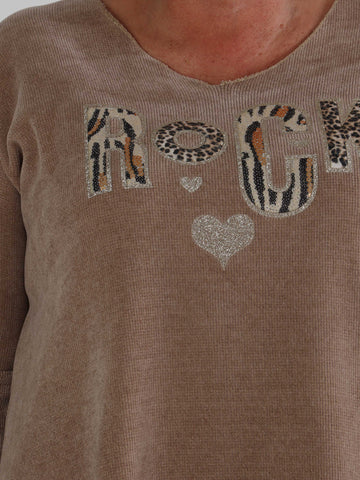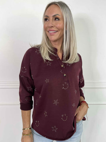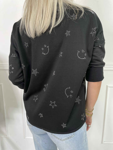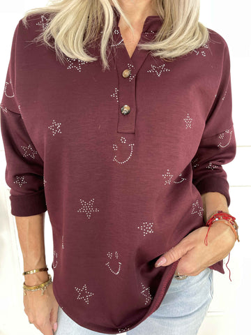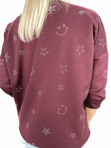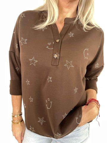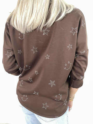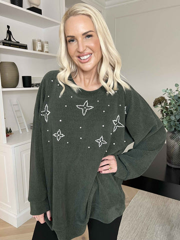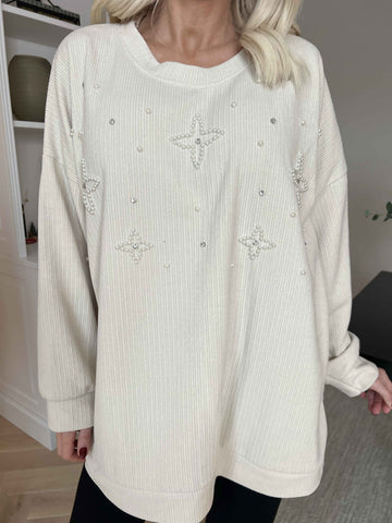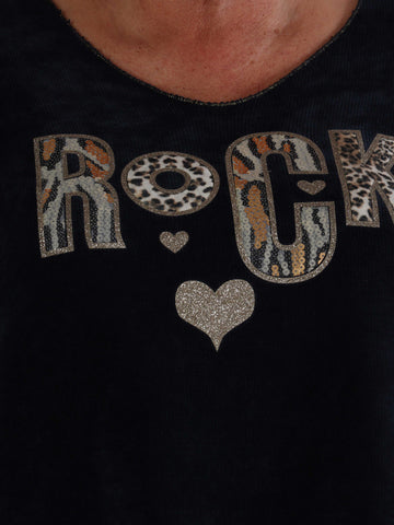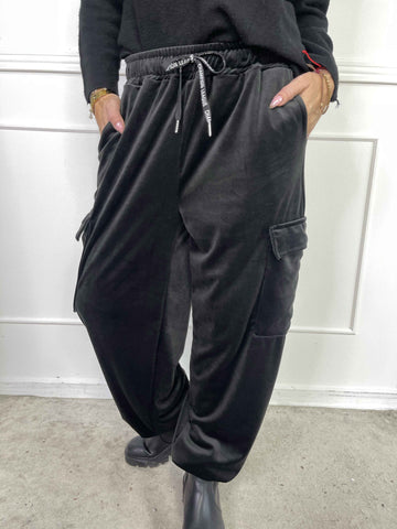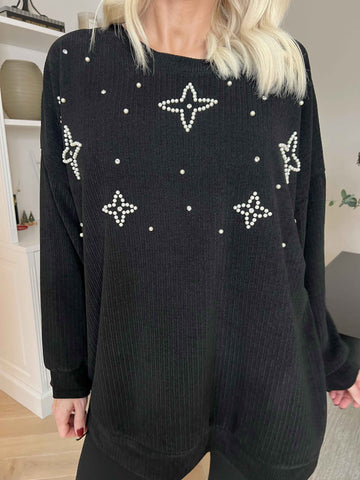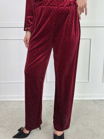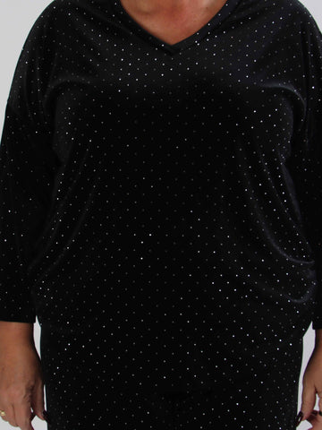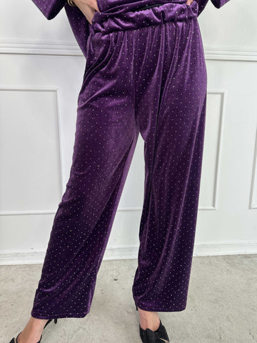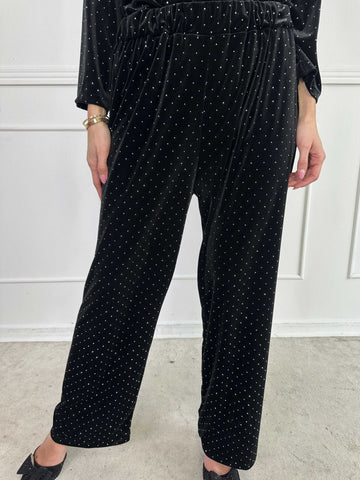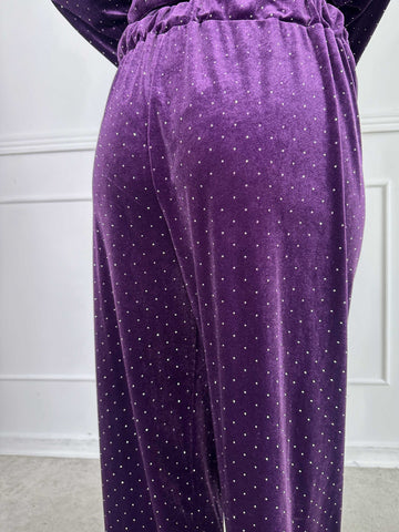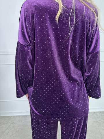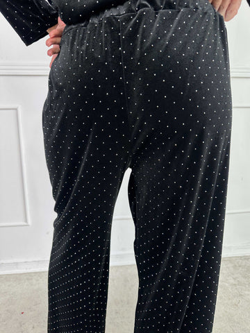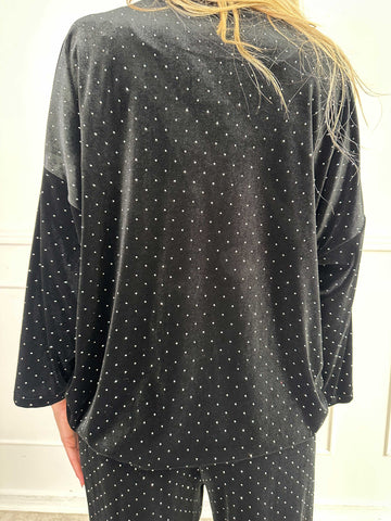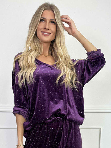 Sparkling - Blødt velour plus size sæt med skinnede sten