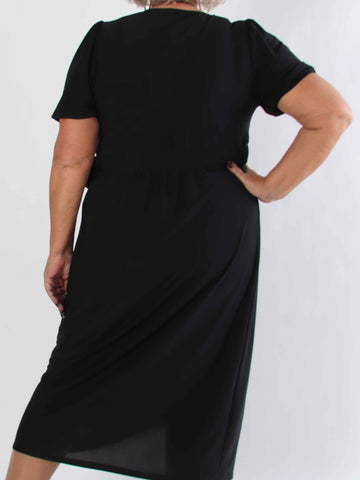 Primula Plain - Elastisk plus size kjole i slå-om-look i ensfarvet
