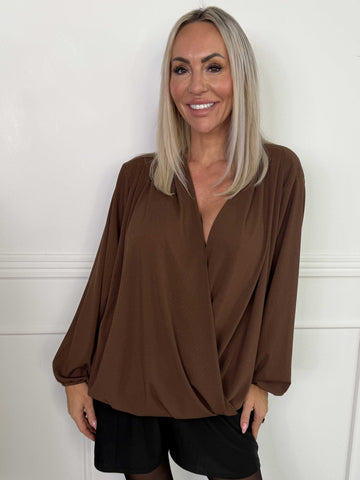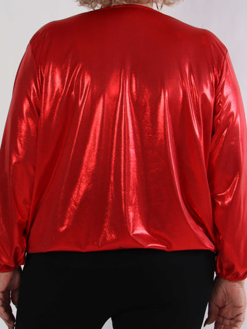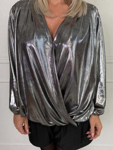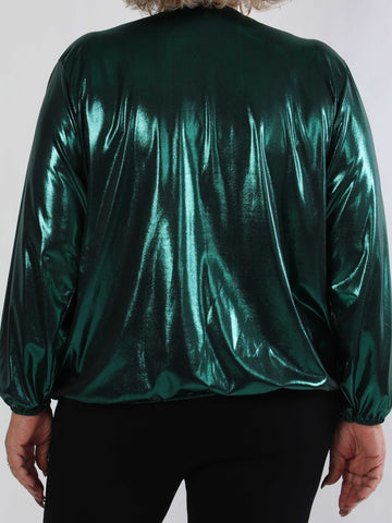 Rakel Shiny - Langærmet plus size bluse i skinnende stof
