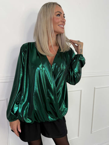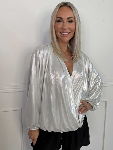 Rakel Shiny - Langærmet bluse i skinnende stof