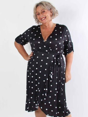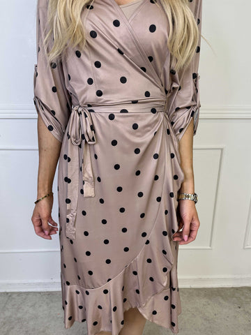 Savina Dot - Elastisk plus size kjole i slå-om-look med prikker