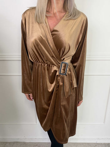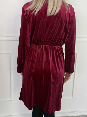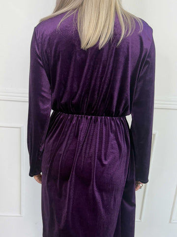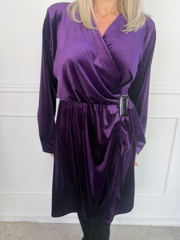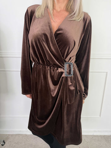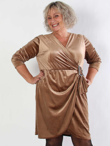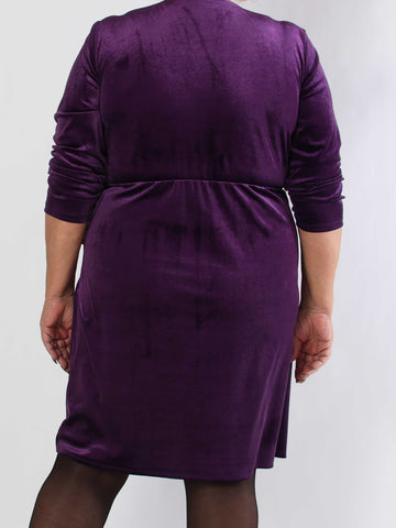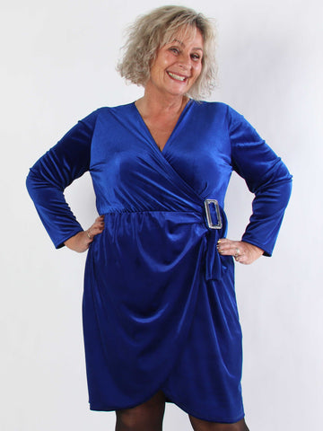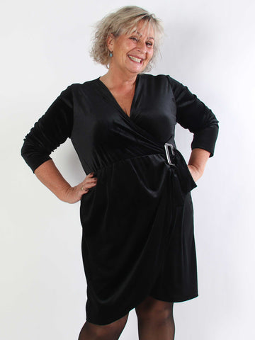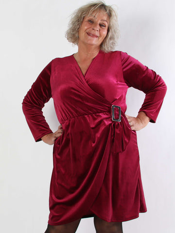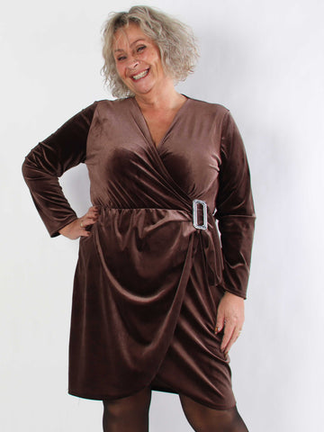 Sinda - Plus size velourkjole med slå-om effekt og spænde