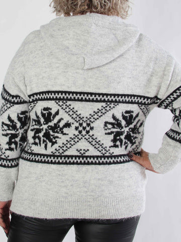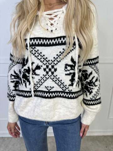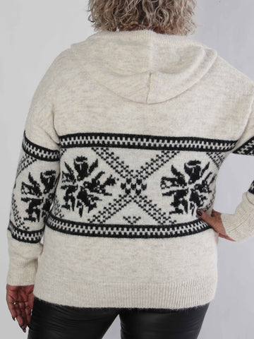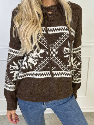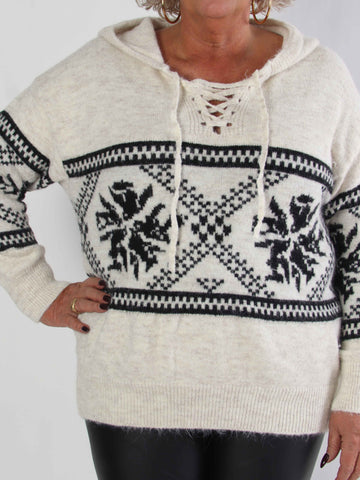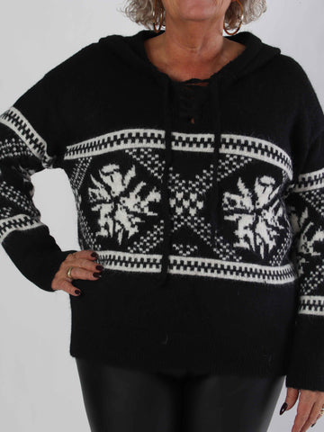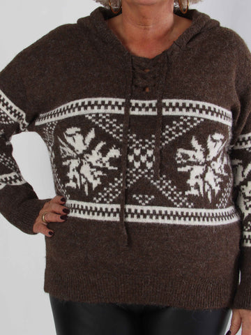 Veni - Hyggelig mønstret uldstrik med snøre i udskæringen