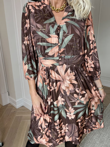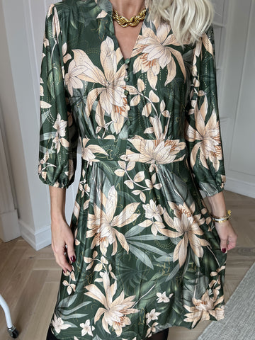 Vivien New Leaf - 3/4 ærmet kjole med mønster og slåede knapper