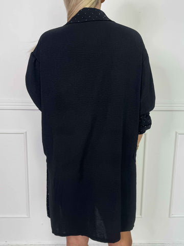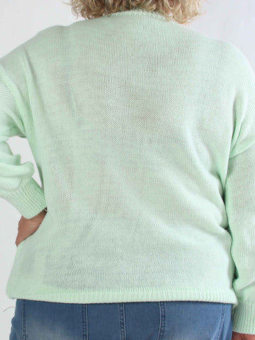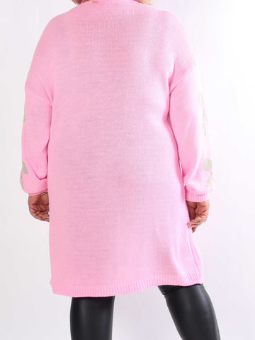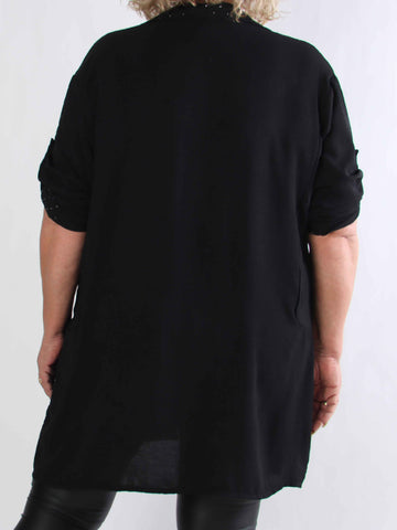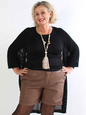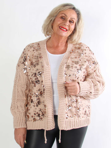 Trisse - Plus size strikcardigan med mesh og pailletter