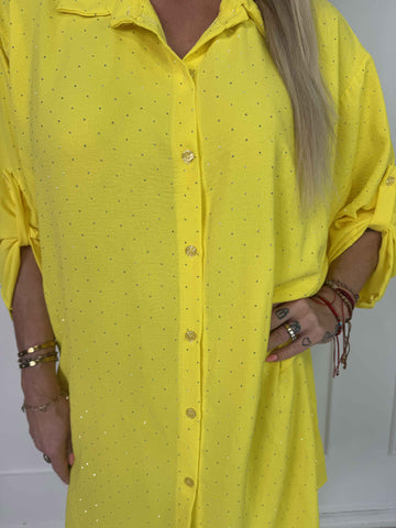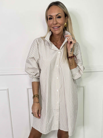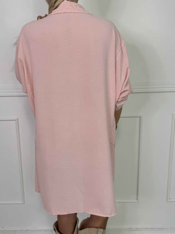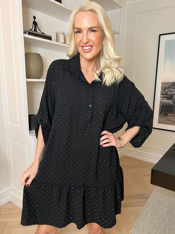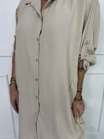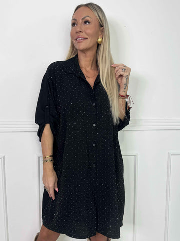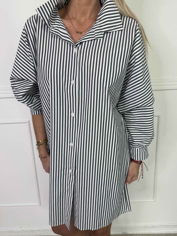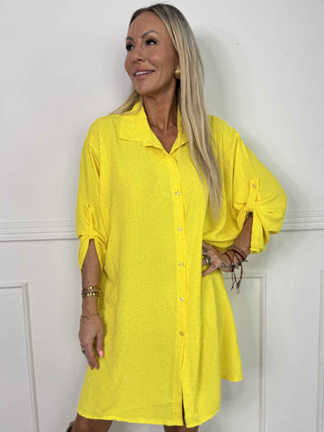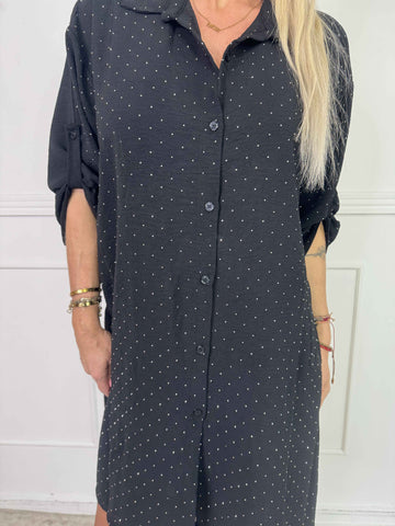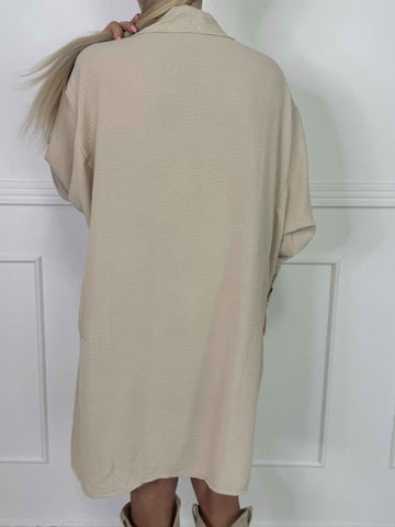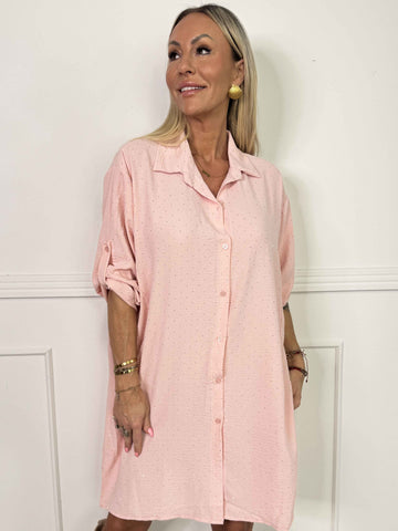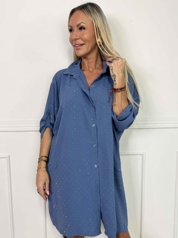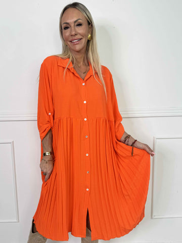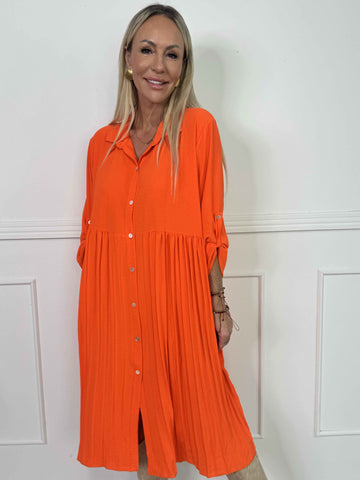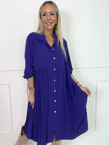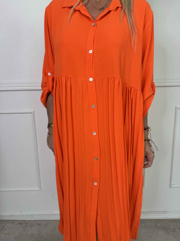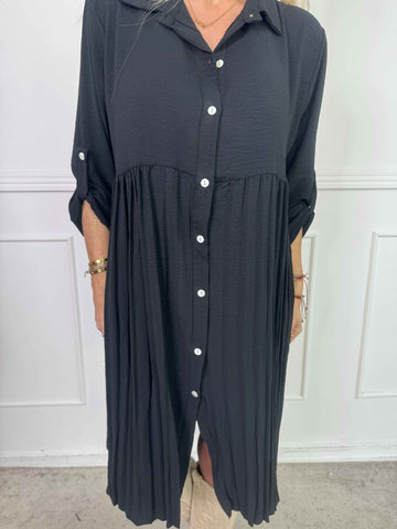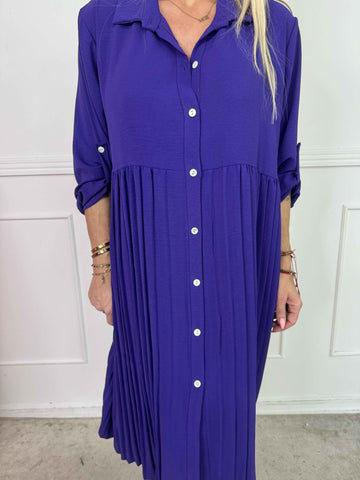Betsy - Elegant skjortekjole i blød viskose med plisseret skørt