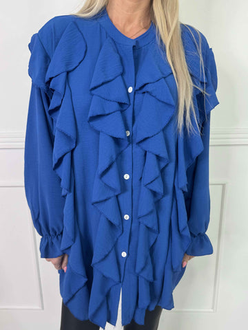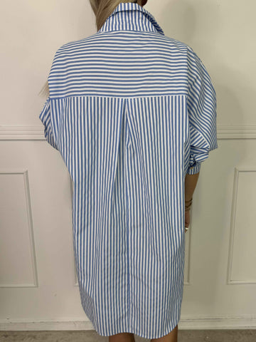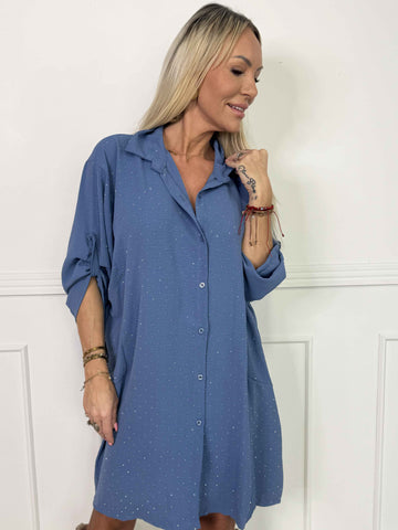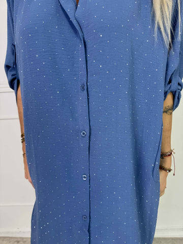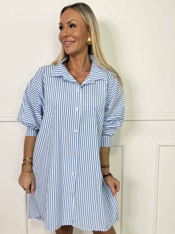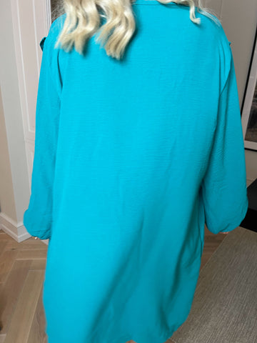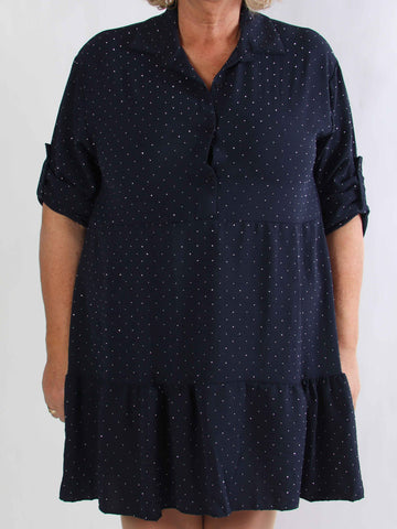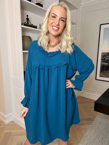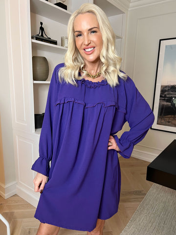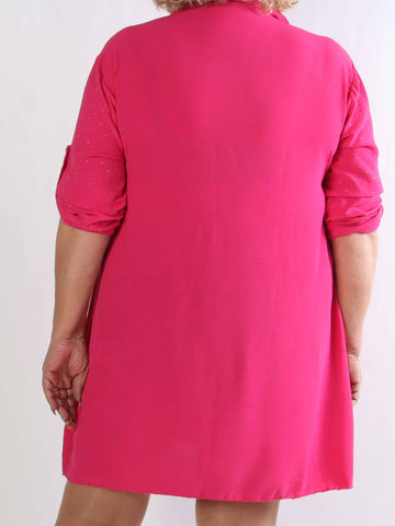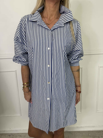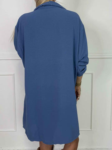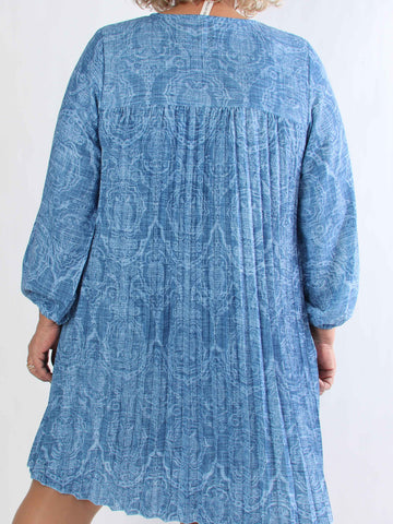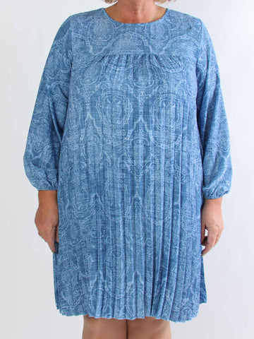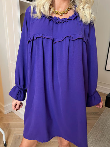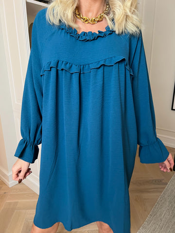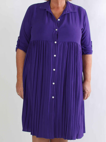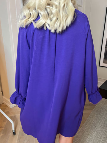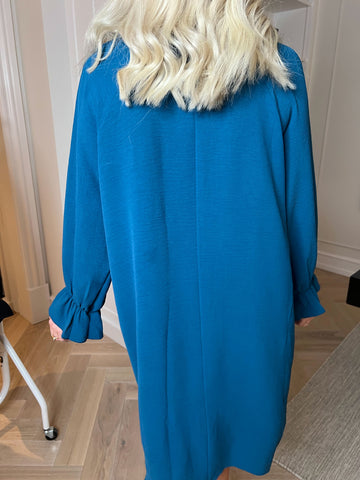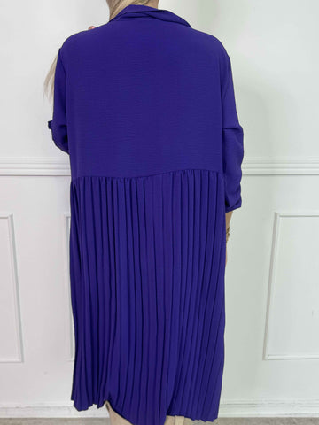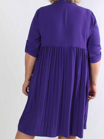 Nancy Royal Short L/S - Plus size kjole med plisseringer og lommer