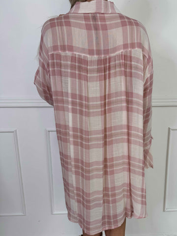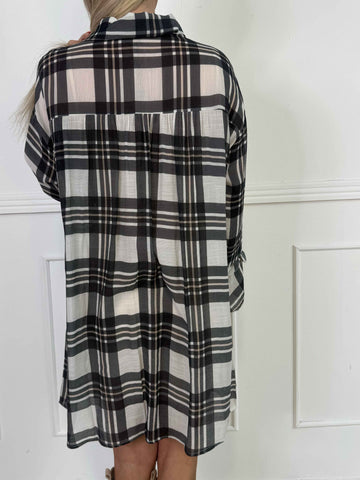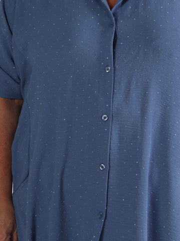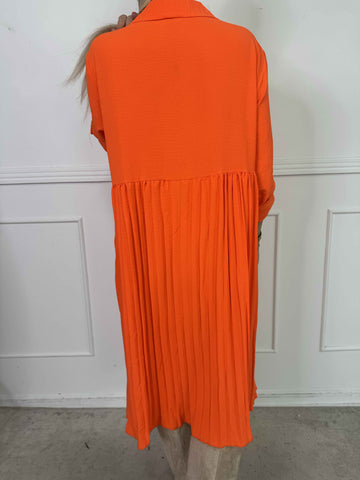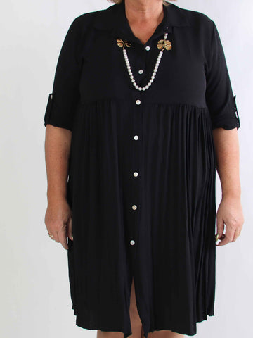 Betsy - Plus size skjortekjole i blød viskose med plisseret skørt