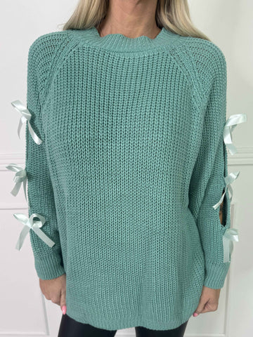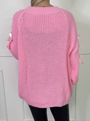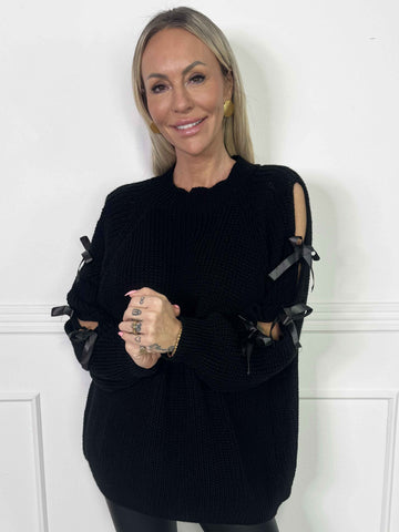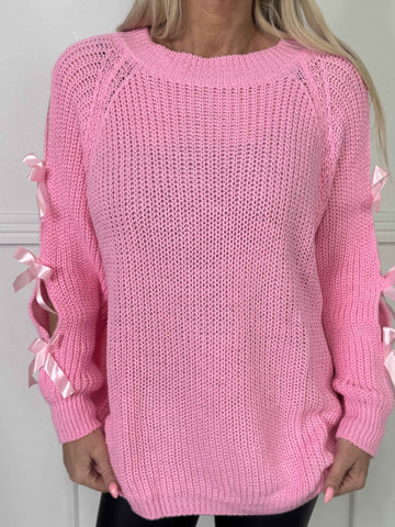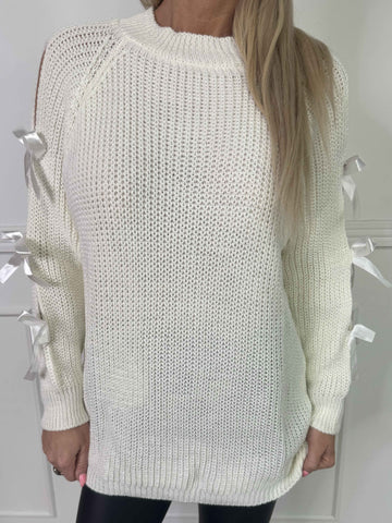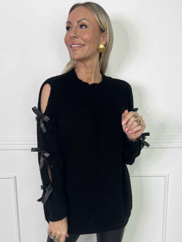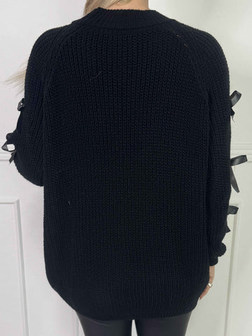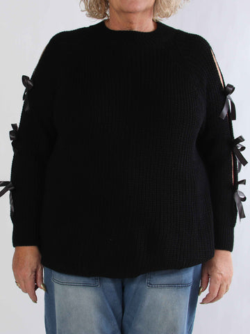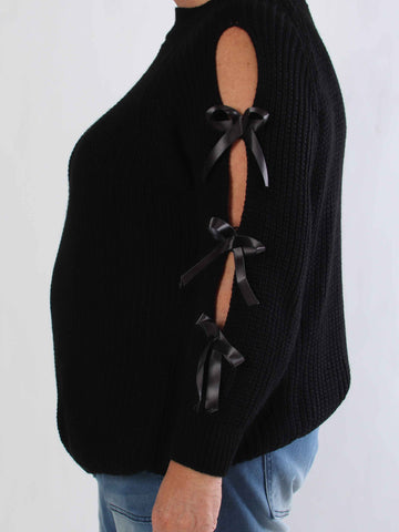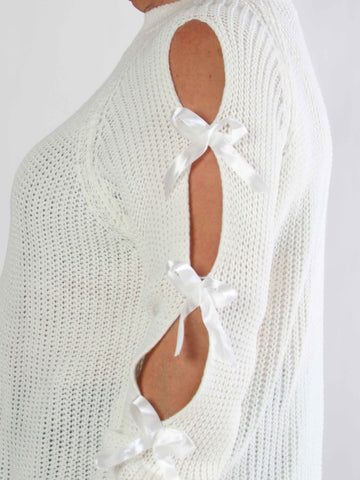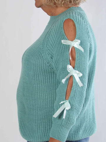 Birtha - Strikbluse med små åbninger og sløjfer på ærmet